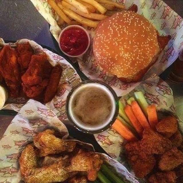 Carne de res (180 g), queso, aros de cebolla empanizadas con nuestra salsa chipotle, acompañada de papas a la francesa.