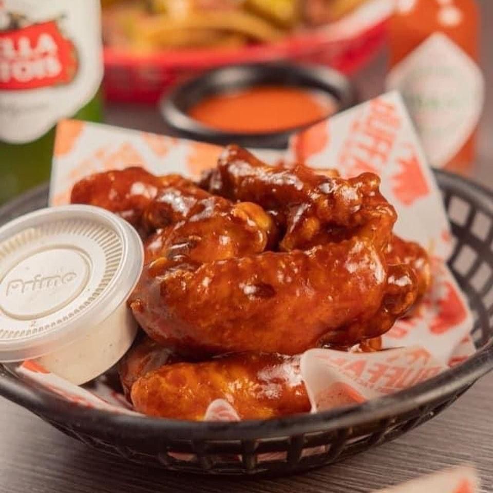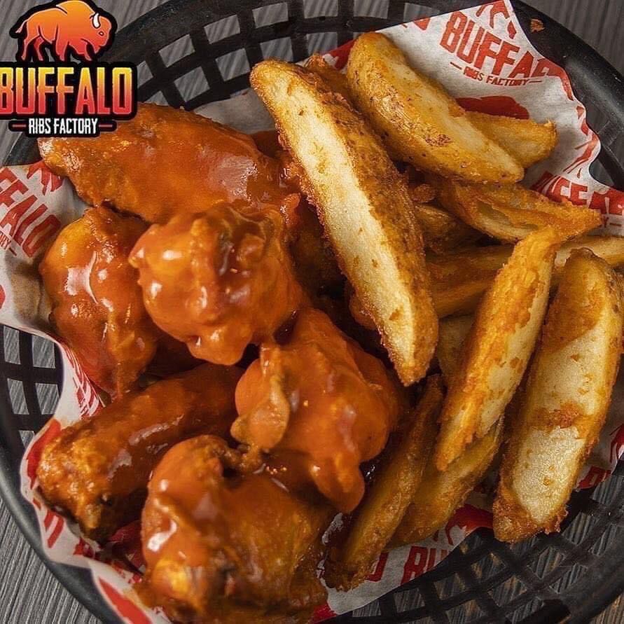 Costilla de cerdo. Salseadas a tu elección, acompañadas de 1 guarnición de papas francesa o elote.