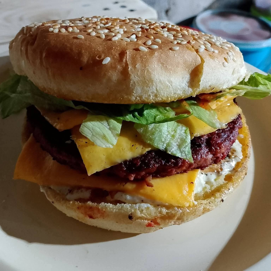 Carne, queso amarillo,lechuga jitomate y cebolla,capsut, mostaza y mayonesa