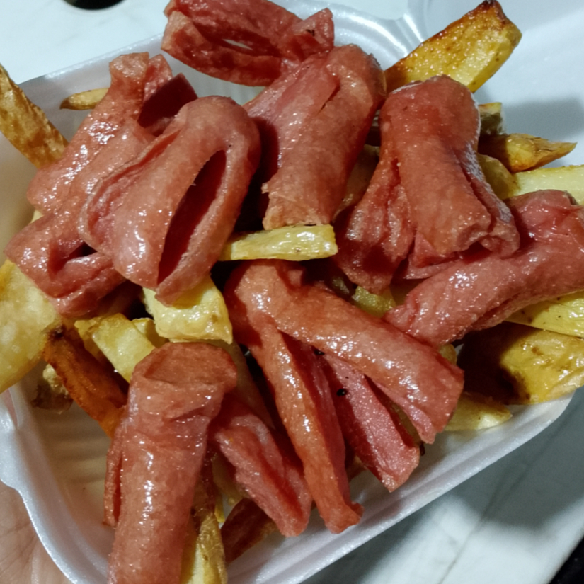 carne, jamon, salchicha, piña, queso amarillo y asadero papas