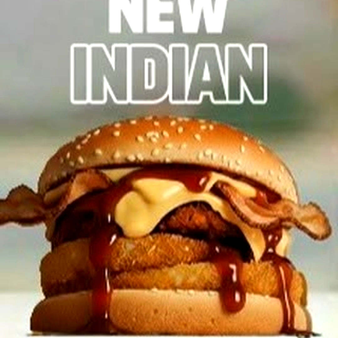 Aderezo new indian, tocino, salsa chesse dip, carne de res y aros de cebolla.