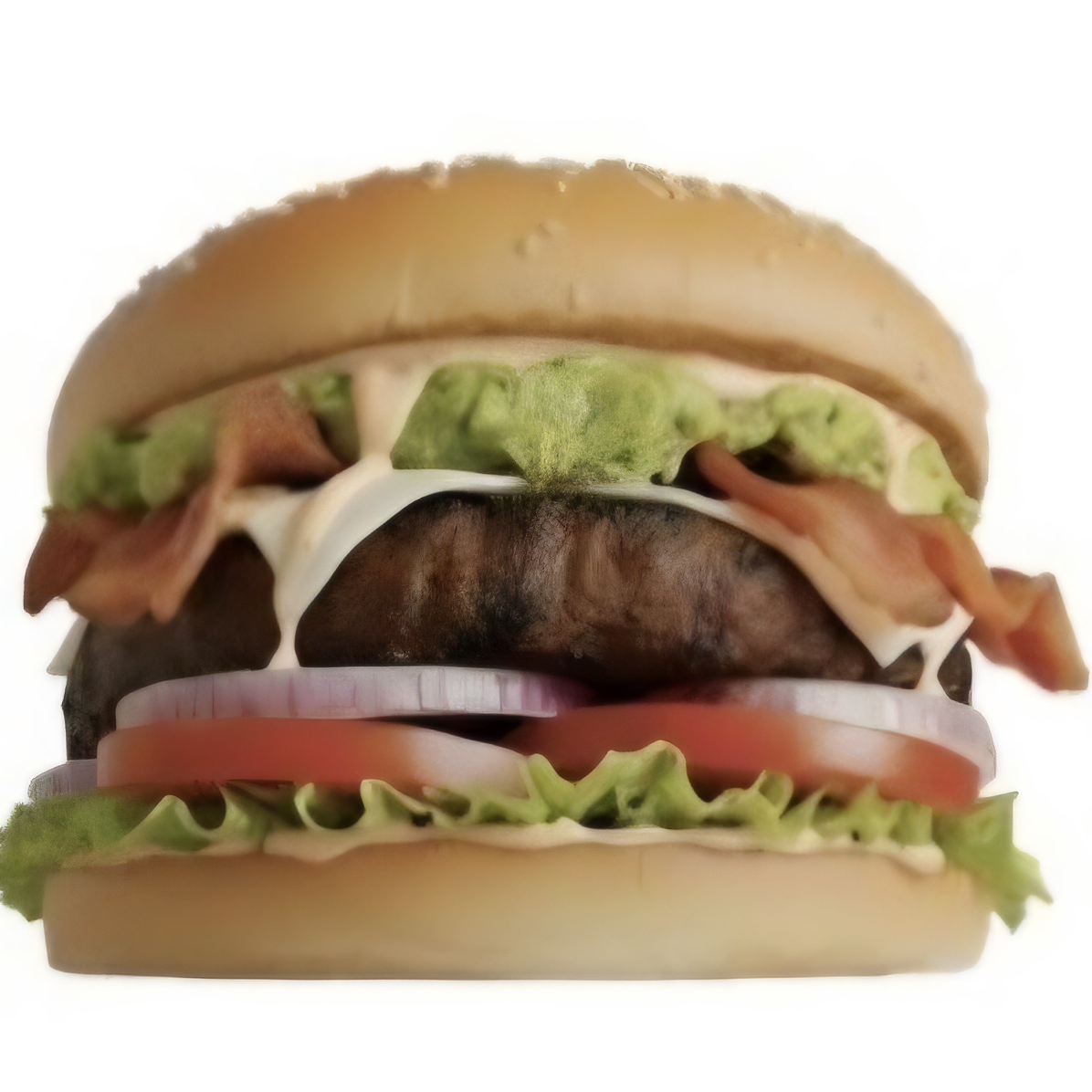 Deliciosa hamburguesa a base de pechuga de pollo (150g.) acompañada de aderezo ranch, tocino, queso manchego, tomate y lechuga.