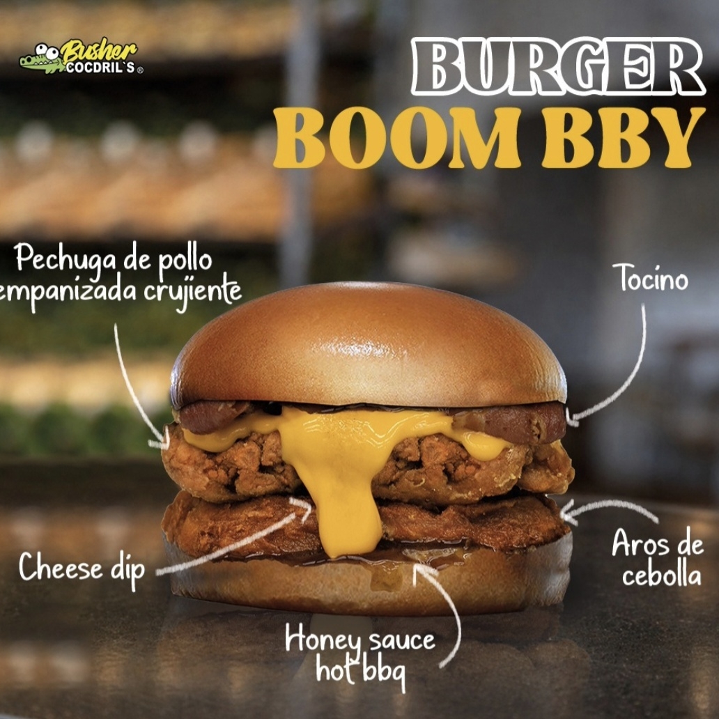 Deliciosa hamburguesa a base de pechuga de pollo (150g.) bañada en salsa buffalo acompañada de aderezo ranch, tocino, queso manchego, tomate y lechuga.
