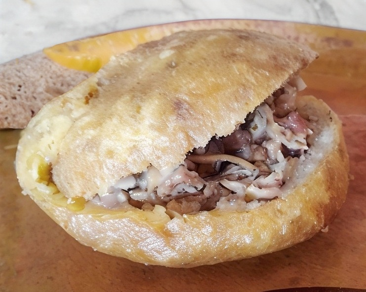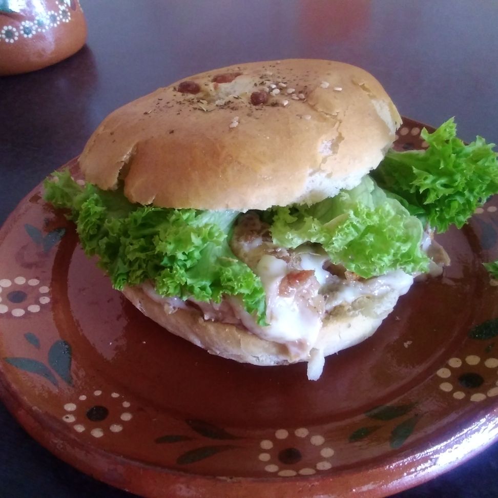 Pan artesanal, lechuga, jitomate, queso, carnitas al gusto.