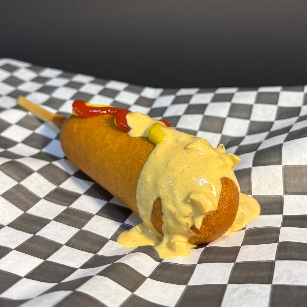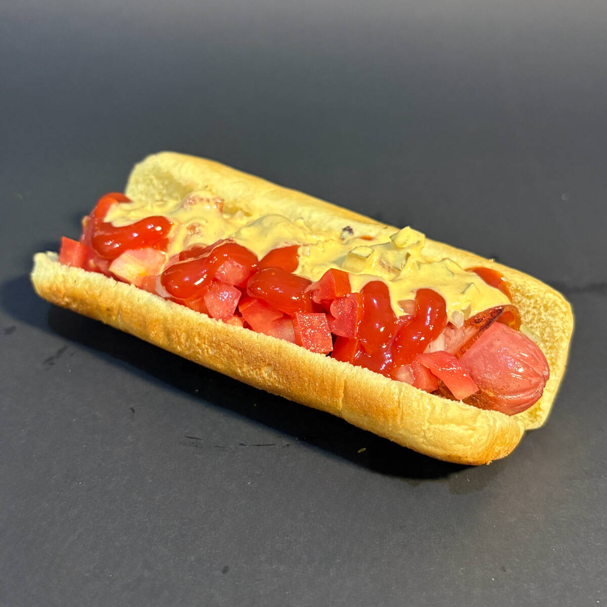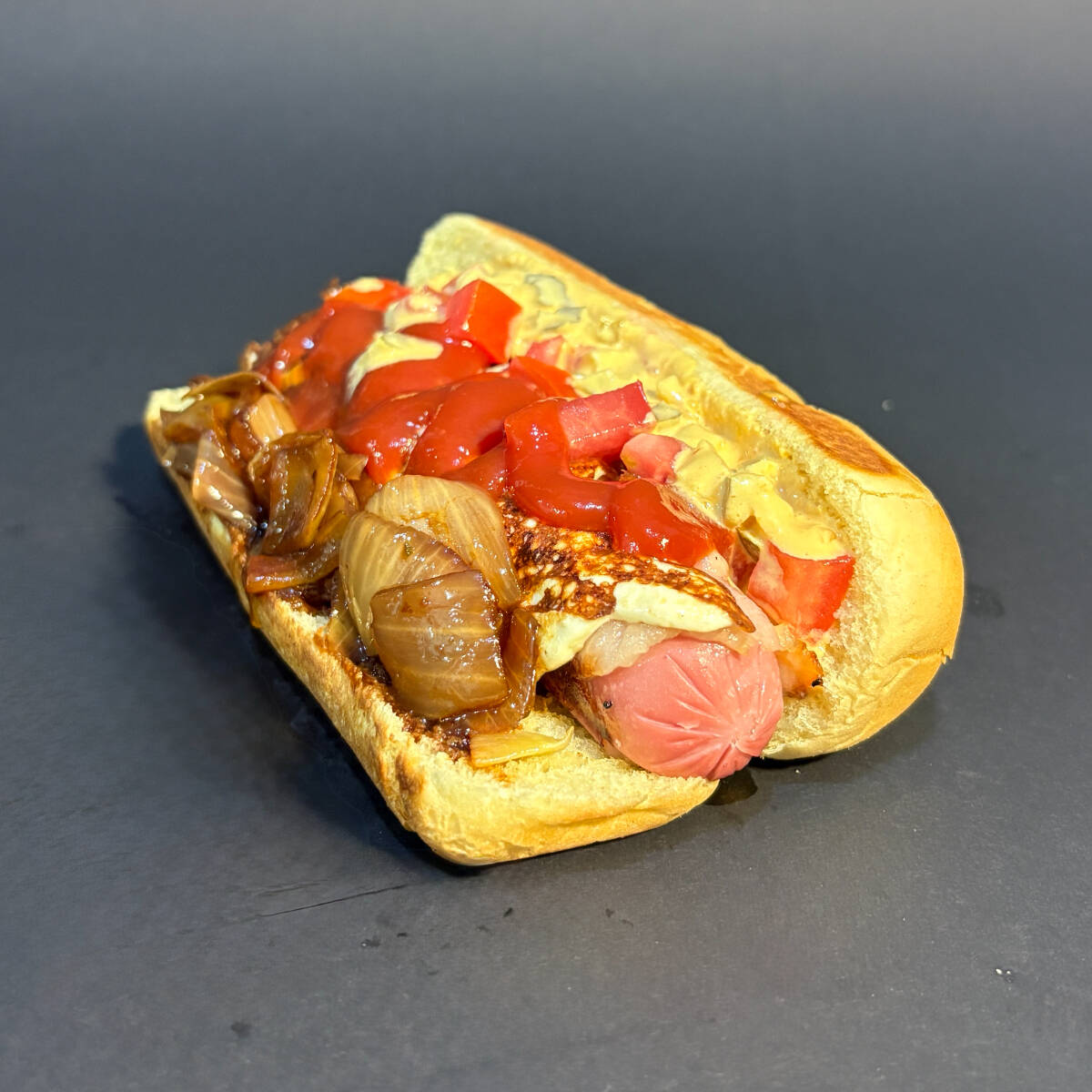 Un clásico mejorado. Salchicha, queso asadero, tocino, jitomate y cebolla caramelizada
