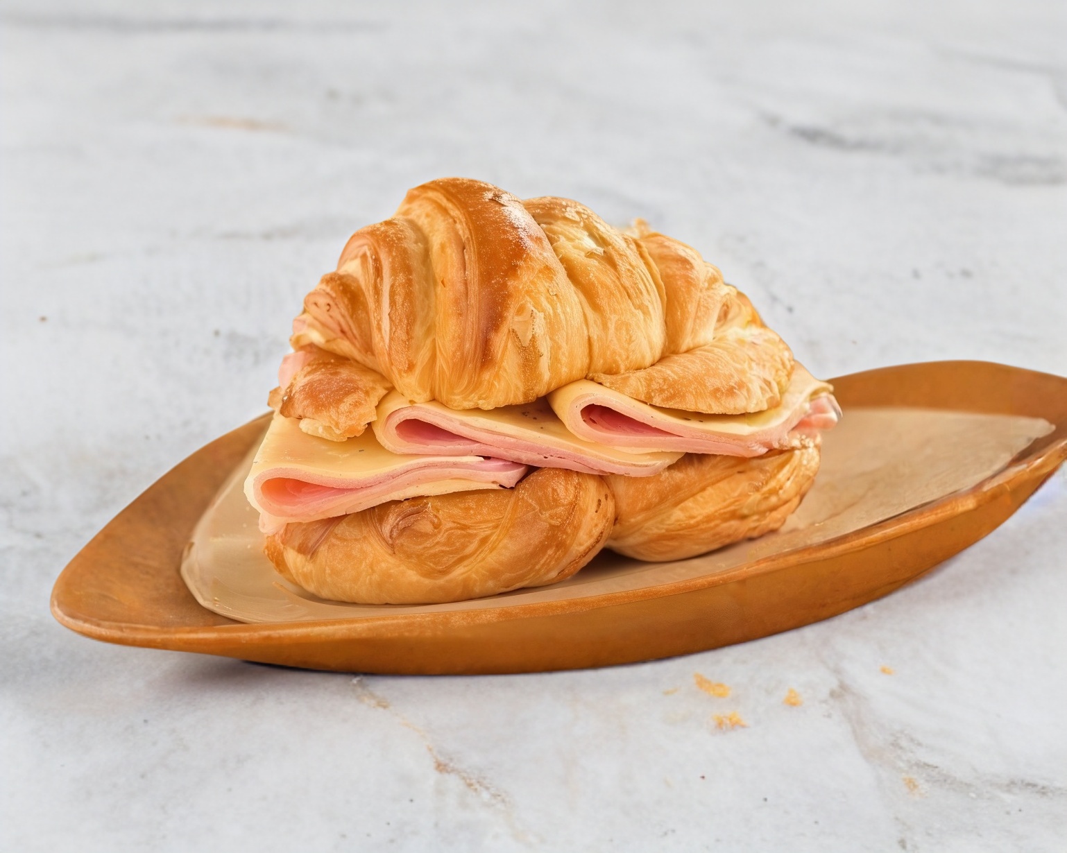 Croissant relleno de aderezo chipotle, jamón, queso y ensalada.