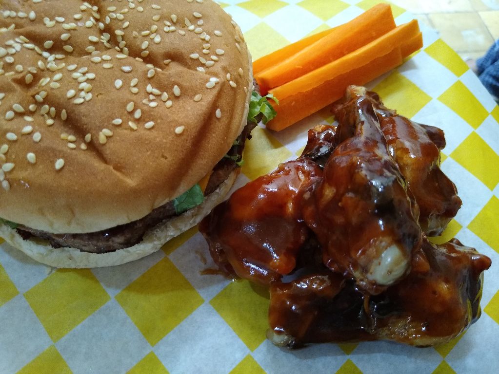 Hamburguesa Maverick con 225gr de alitas (las alitas se pesan antes de freídas).