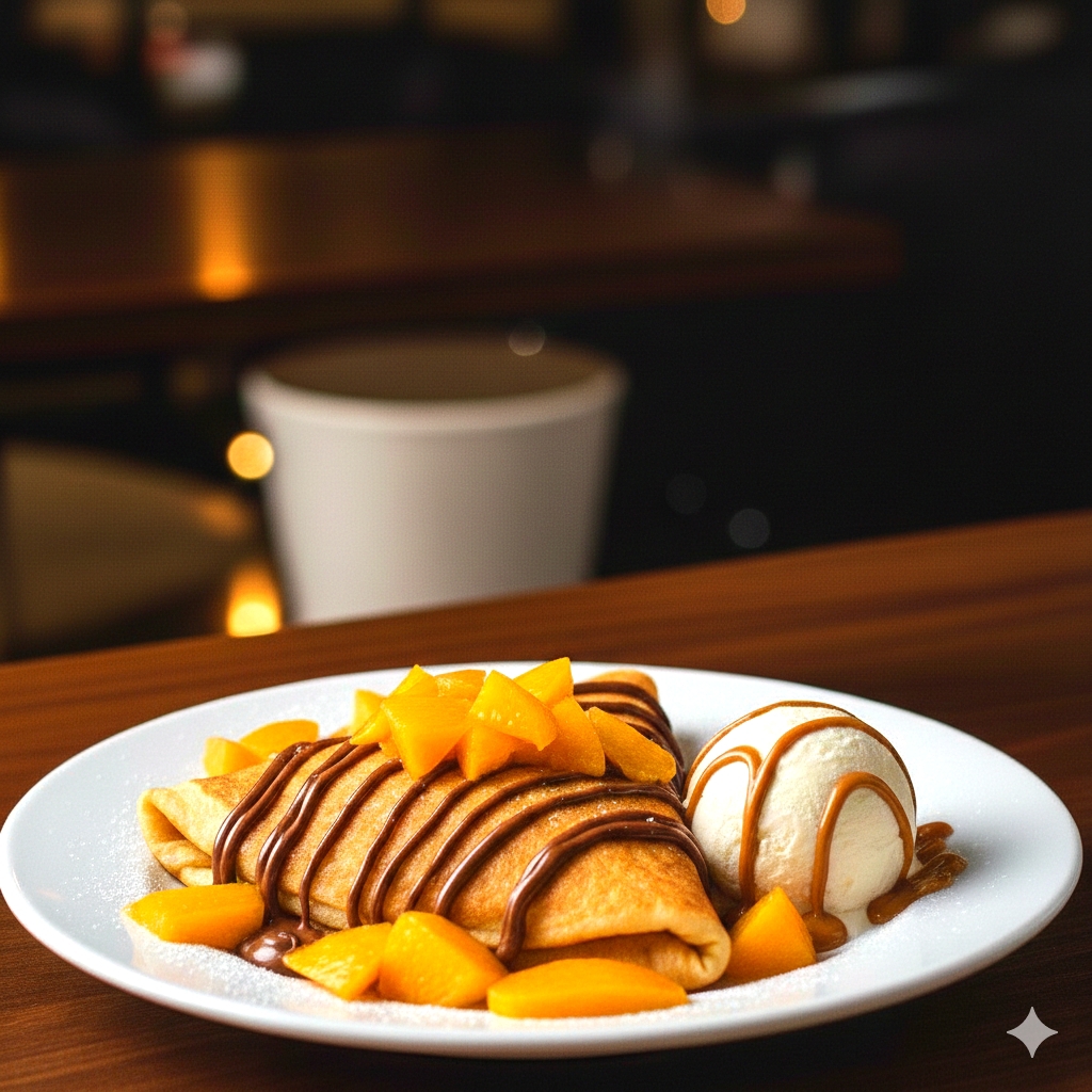 Crepa de Cajeta, Mango y Durazno