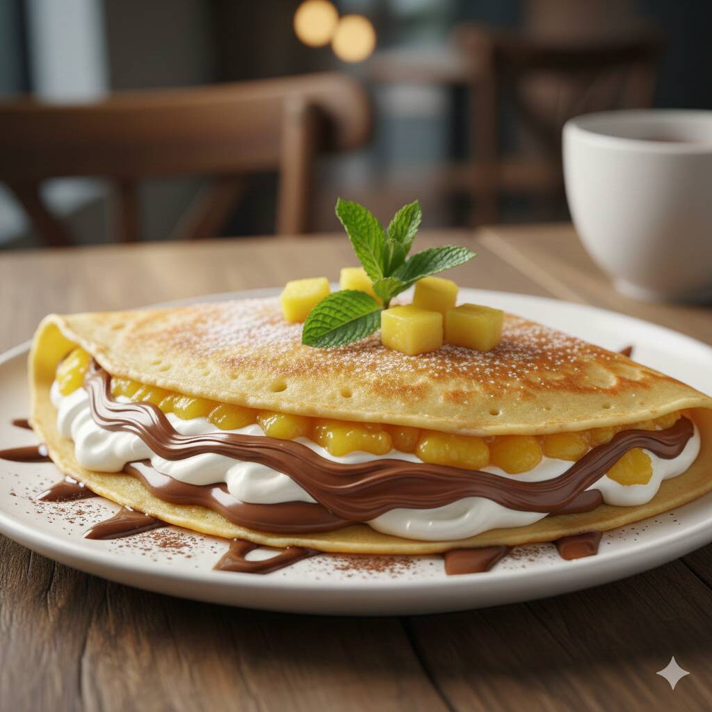 Crepa rellena de nutella con mango