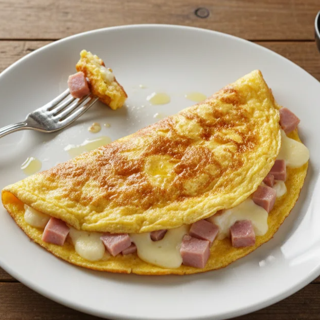 3 pzas de huevo, jamon, queso manchego, salsa verde, frijoles con queso y pan