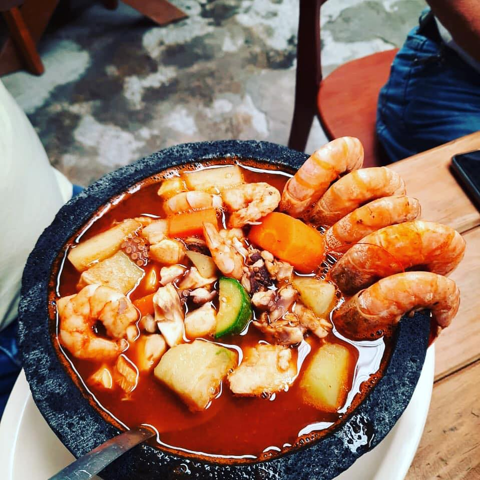 1 Litro de Caldo de camarón, ostión, pulpo y filete de pescado acompañado de verduras y su guarnición.