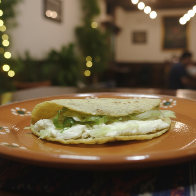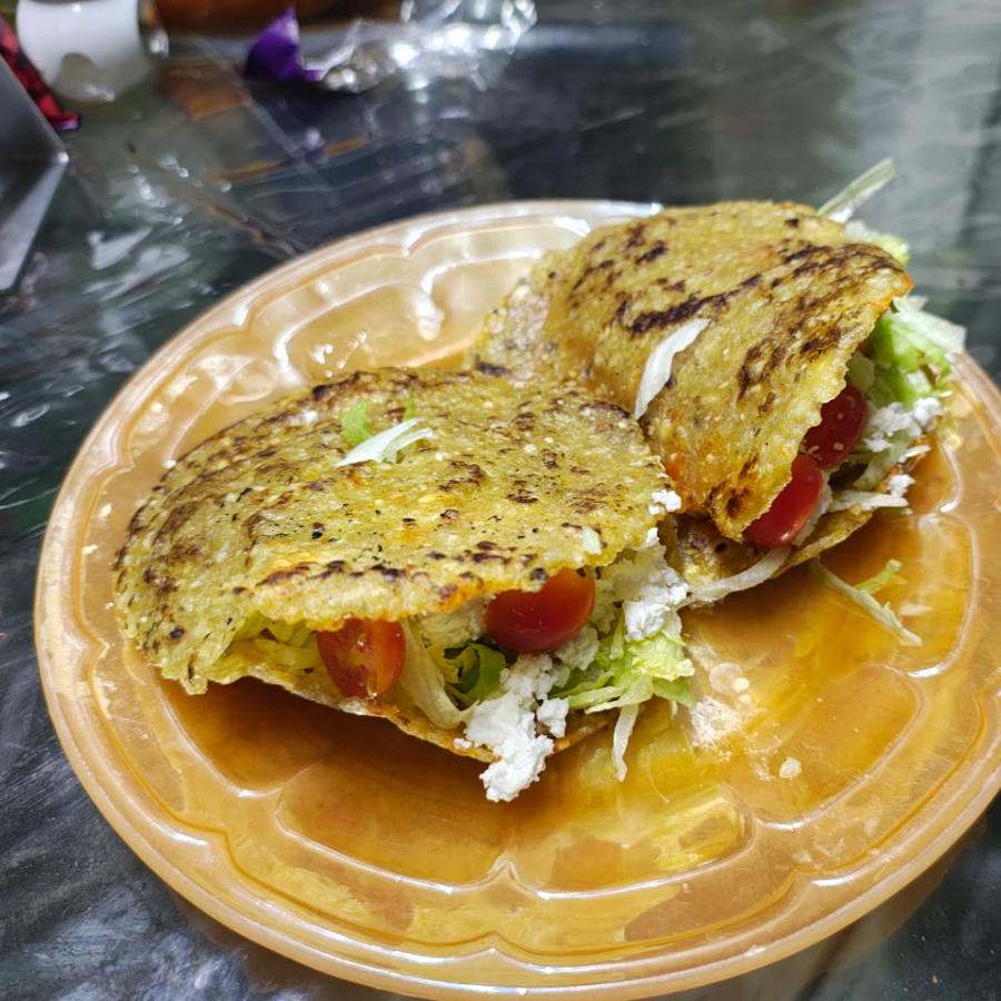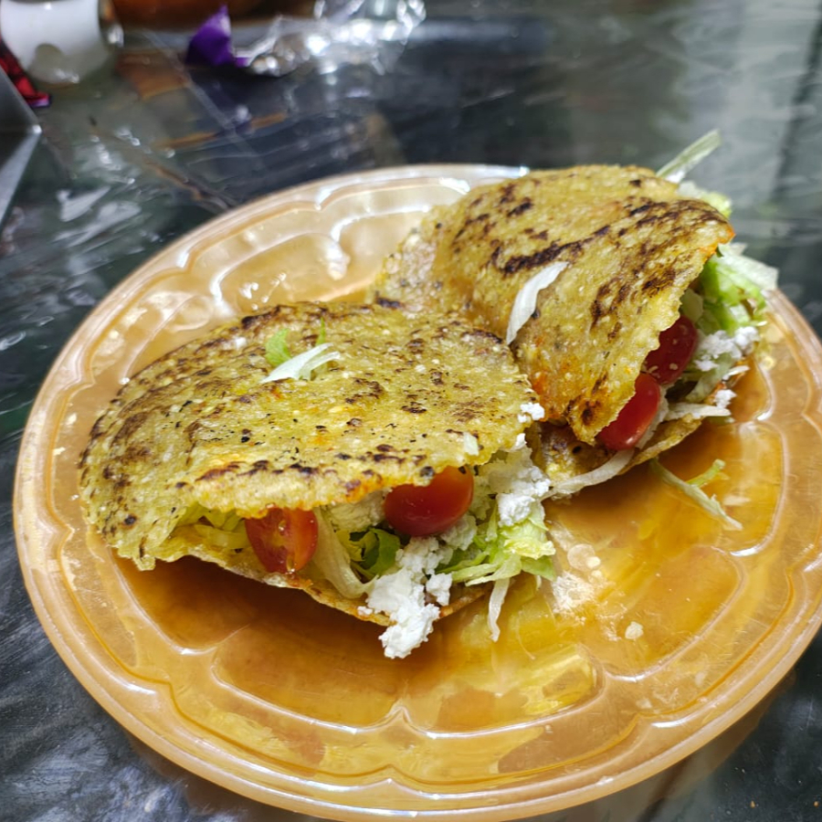 Gordita frita de picadillo acompañada de lechuga y queso