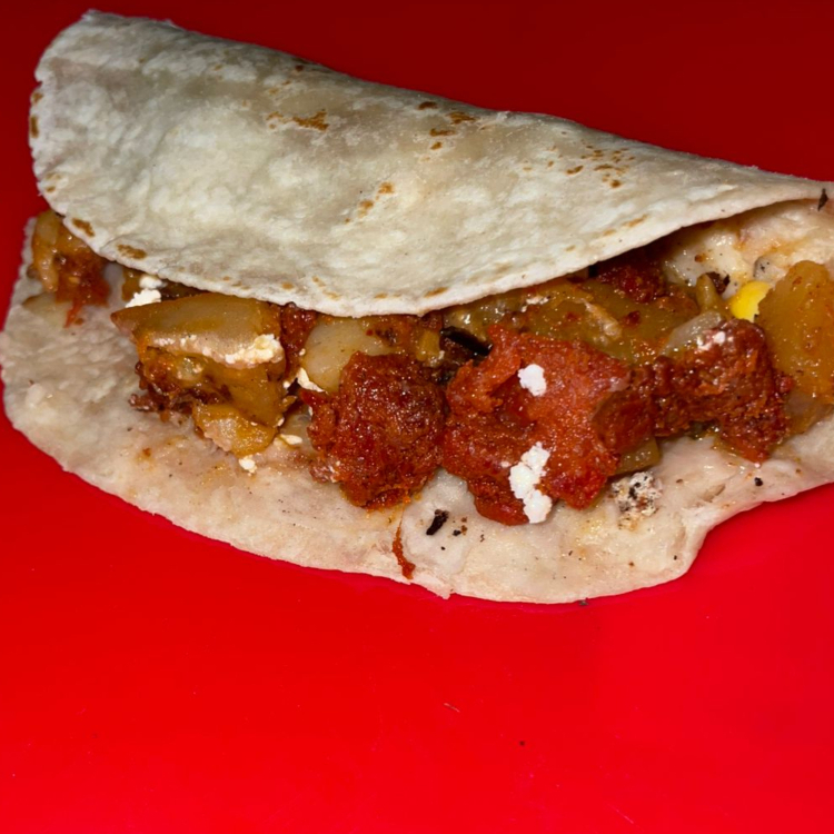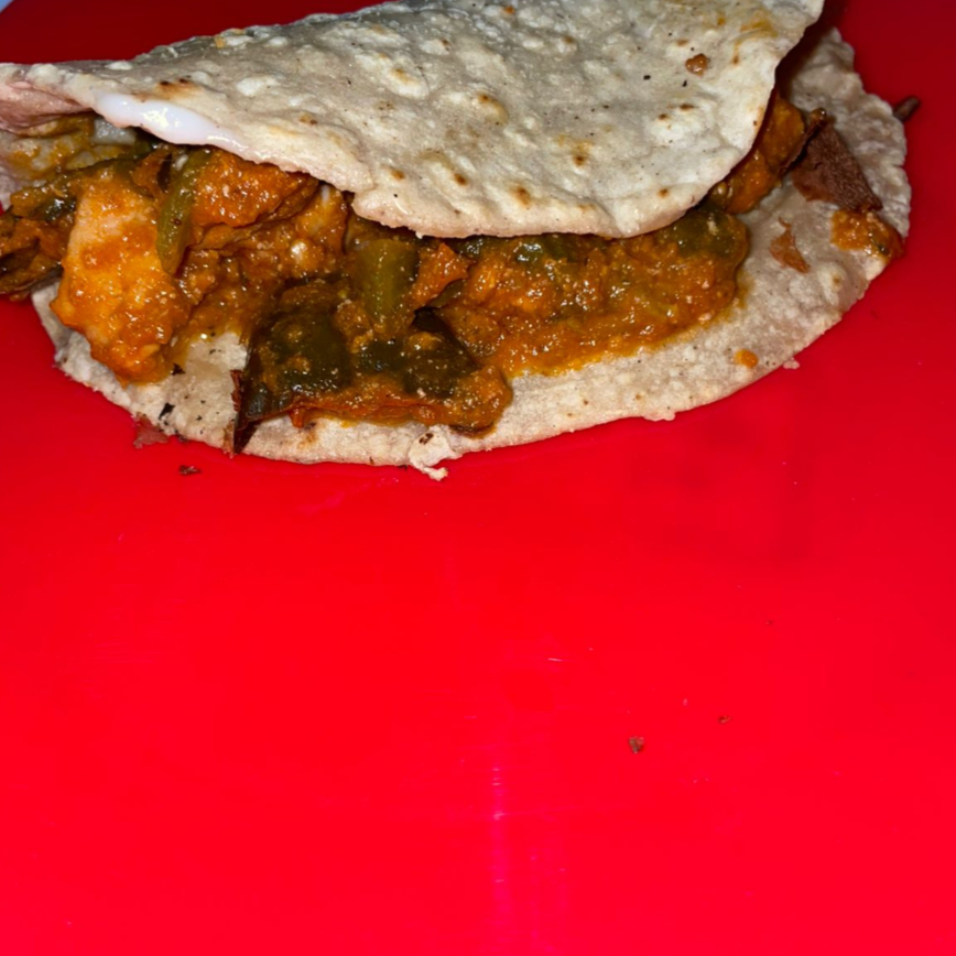Quesadilla de Maíz con Carne de Puerco en Rajas