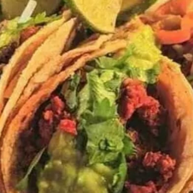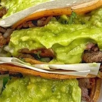 Auténtico sabor parrillero en tortilla artesanal, incluye salsa verde, guacamole, cebolla y cilantro.