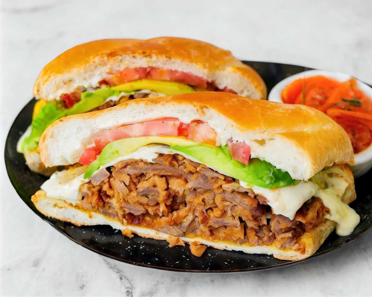 DOBLE CARNE JAMON Y QUESO LECHUGA,JITOMATE,AGUACATE,PICANTE,ADERESOS