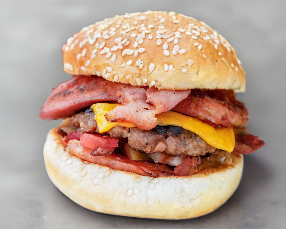 HAMBURGUESA CON SALCHICHA Y TOCINO