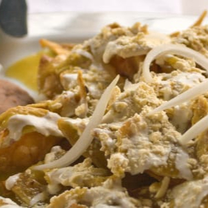 Chilaquiles verdes servido con huevito estrellado, acompañado con arroz frijoles salsa y bolillo