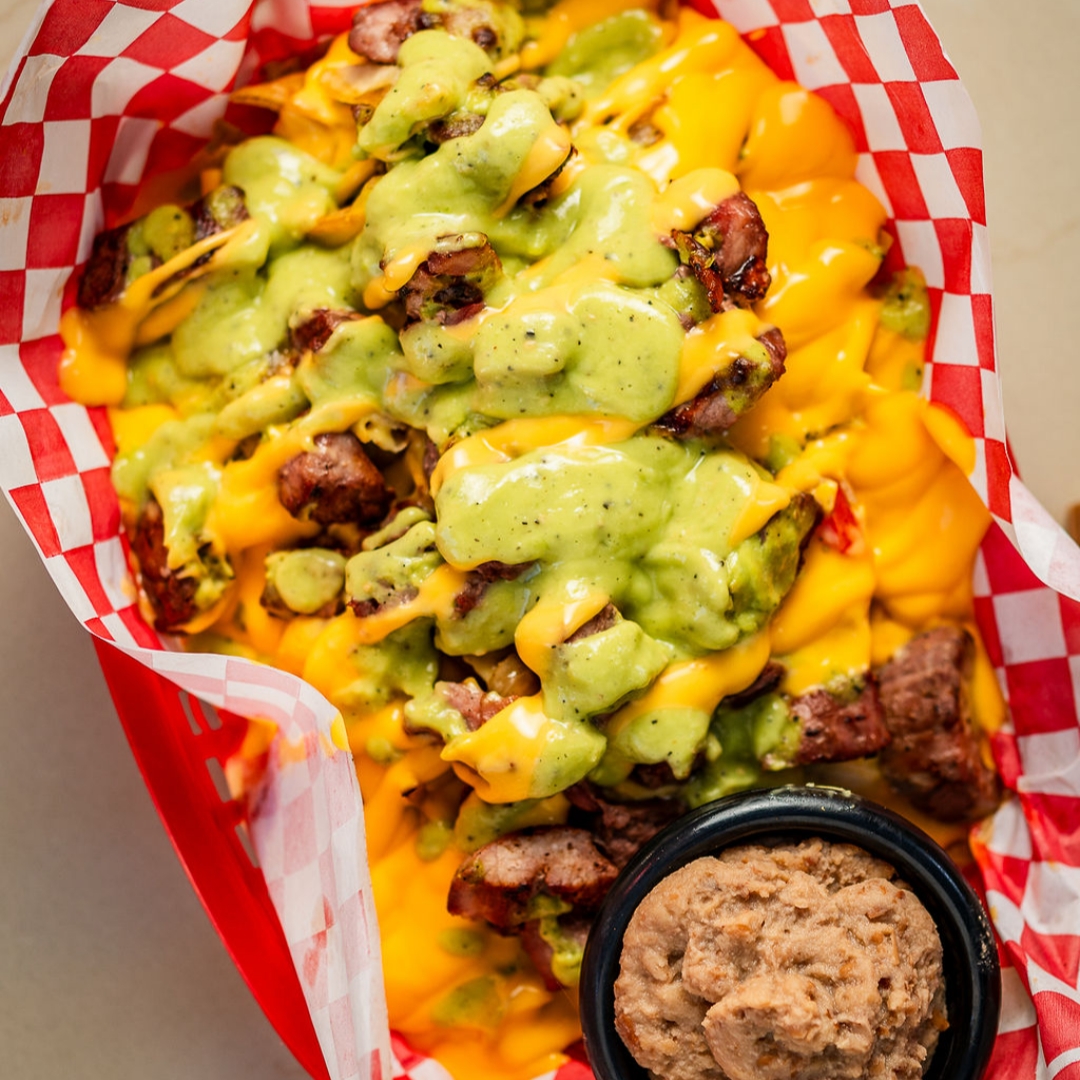 Incluye queso, frijoles y pico de gallo.