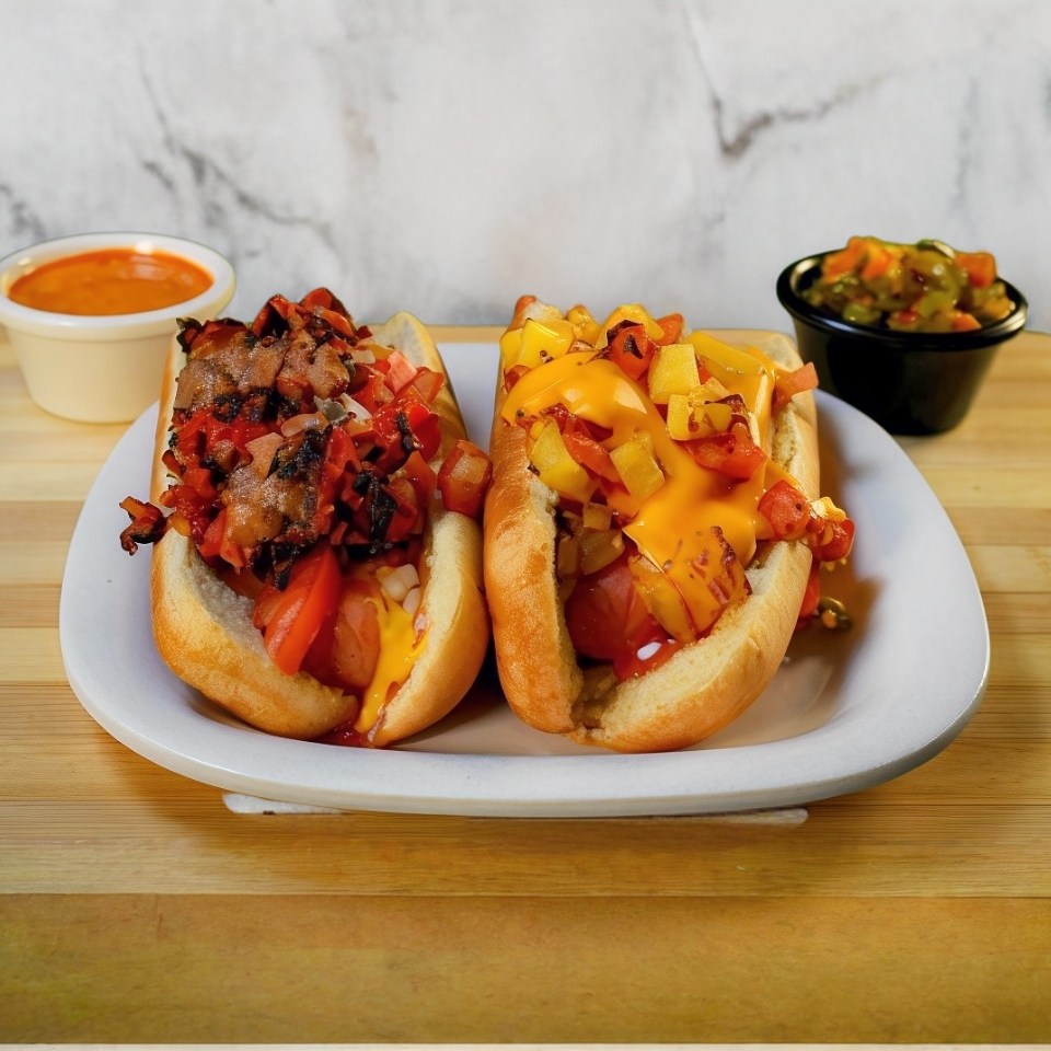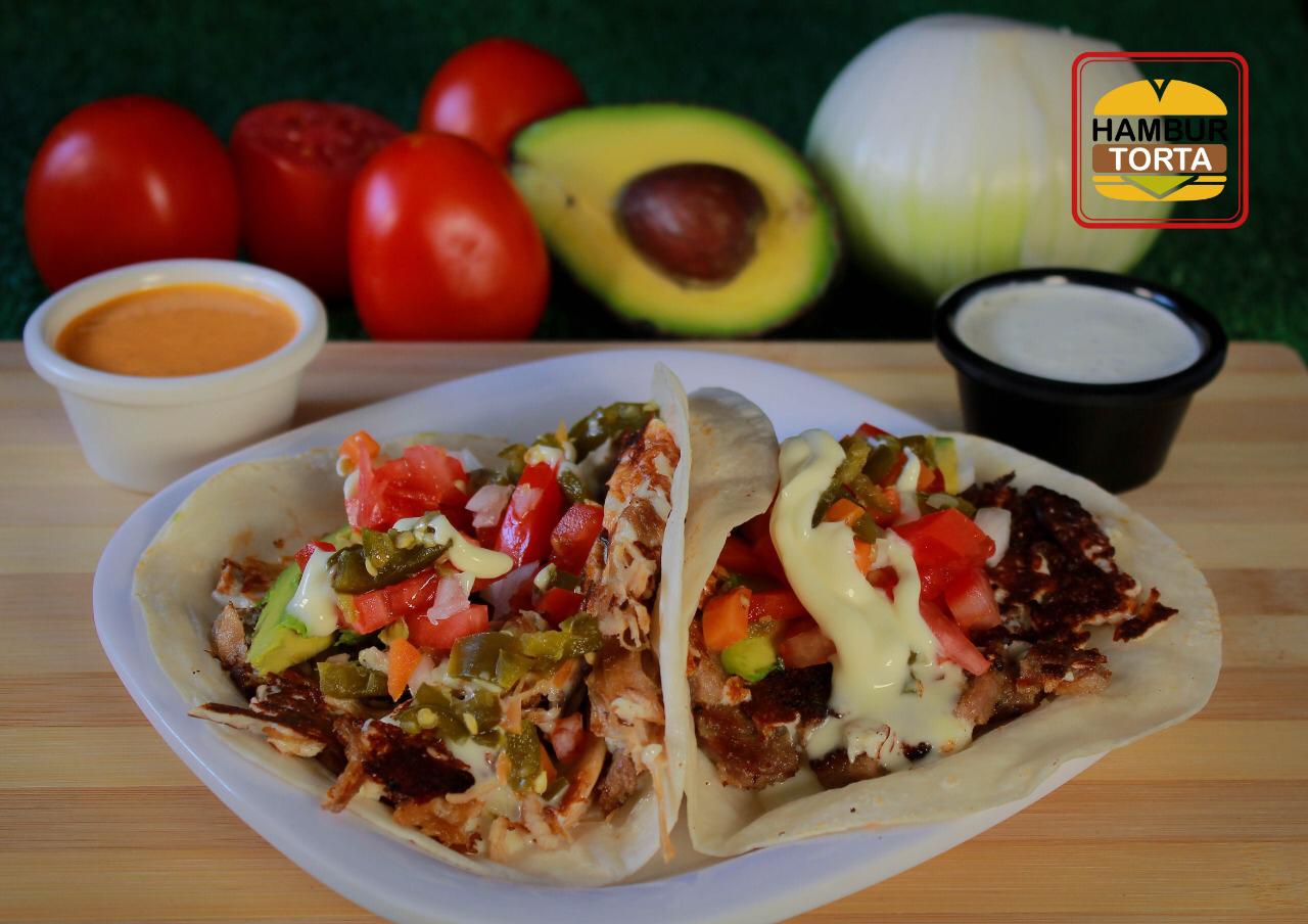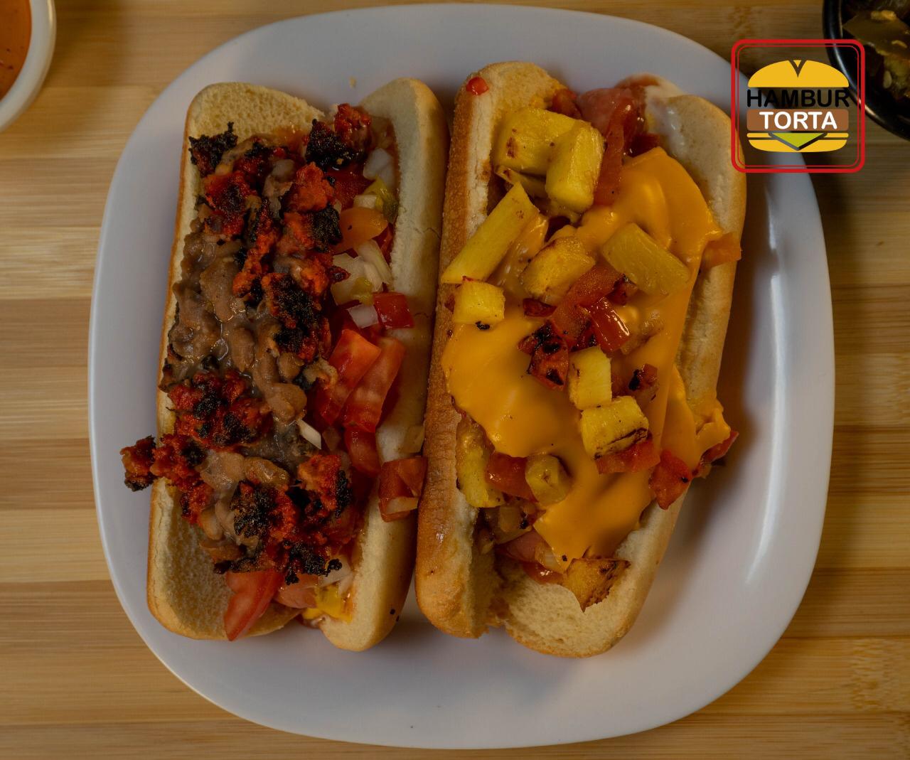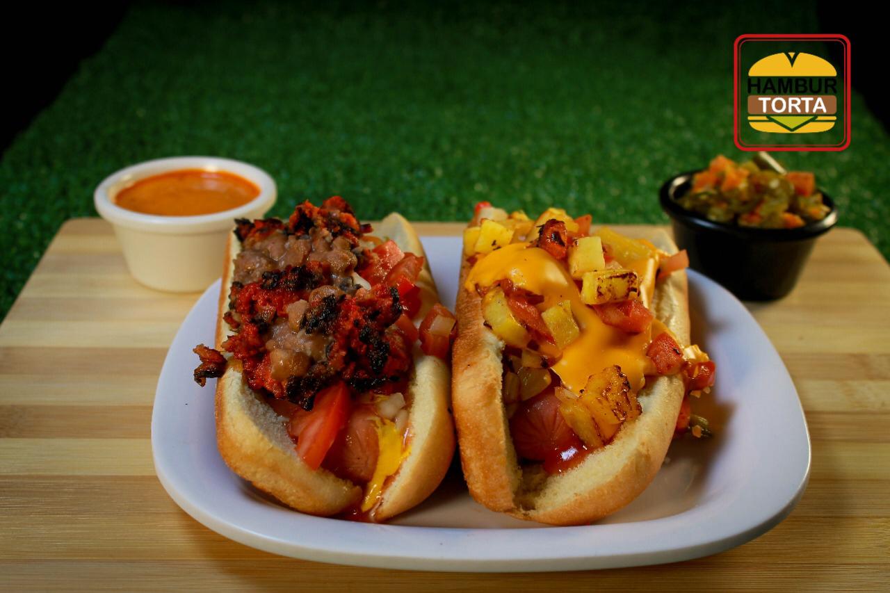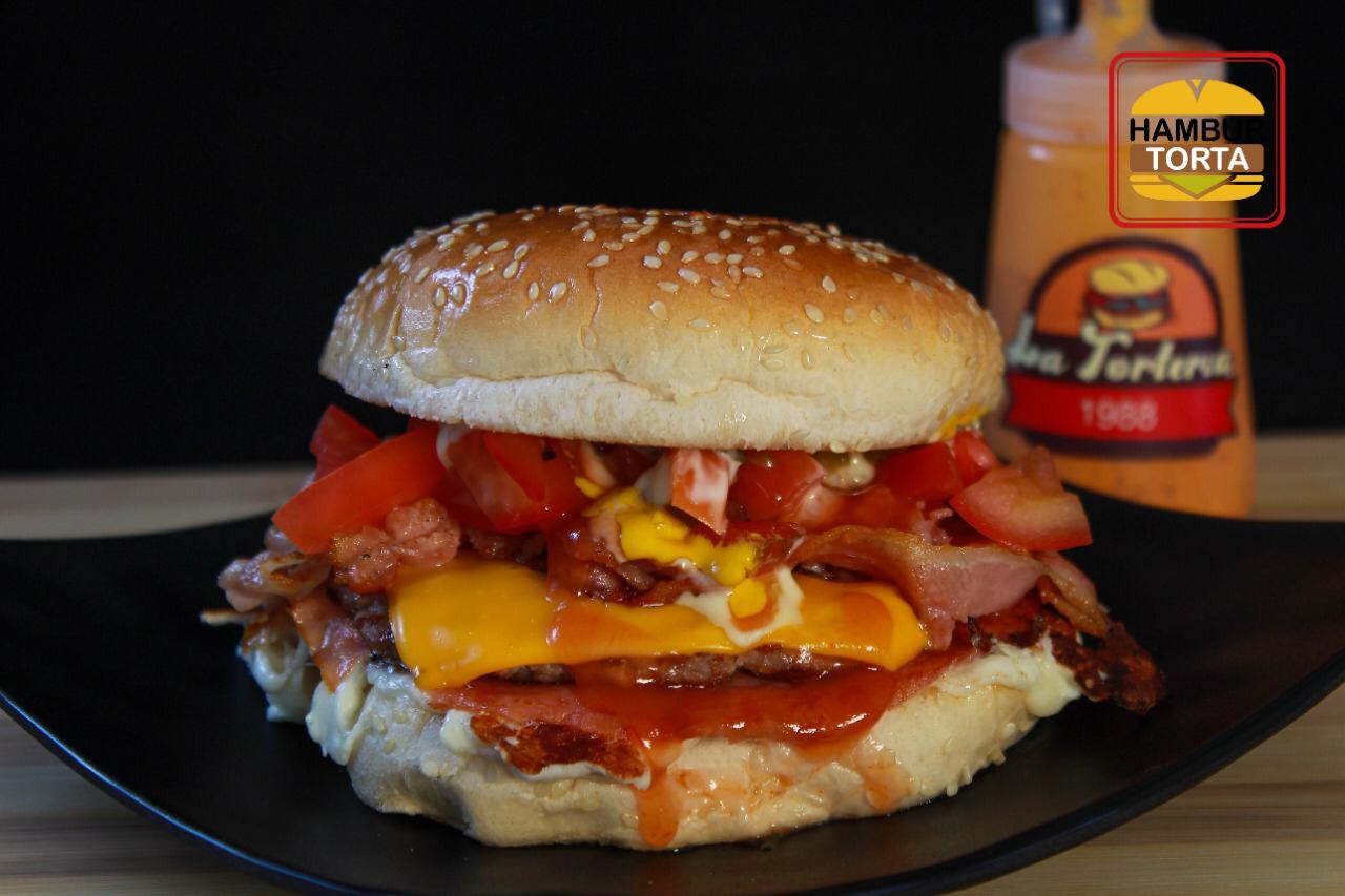 Doble carne dos quesos tocino jitomate cebolla chile crema mostaza catsup