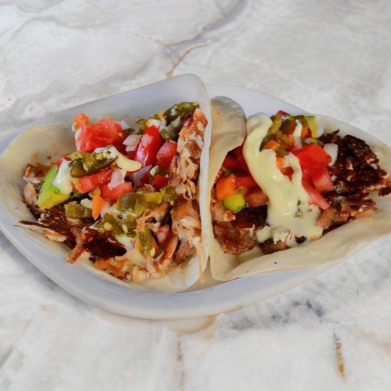 Tocino queso asadero jitomate cebolla chile crema mostaza catsup