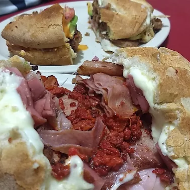 Doble Telera. Milanesa, Jamón, Pierna, Queso Amarillo y Queso Asadero, lechuga, jitomate, cebolla, aguacate y mayonesa