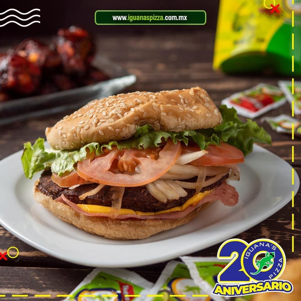150 gr de carne de res, queso amarillo, jamón, lechuga, jitomate, cebolla y chile jalapeño