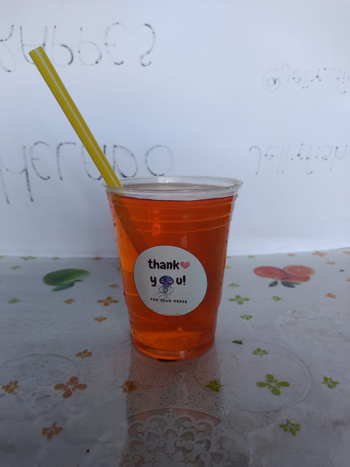 16 oz. Base té verde, negro o rojo, leche de soya y aceite esencial de naranja