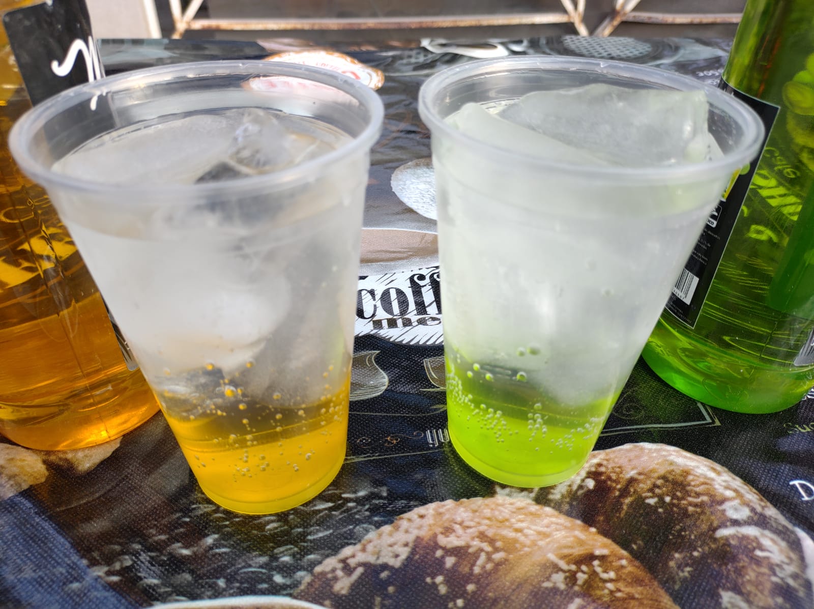 16 oz. jarabe sabor manzana verde, hielo y agua mineral con una presentación estilo italiano
