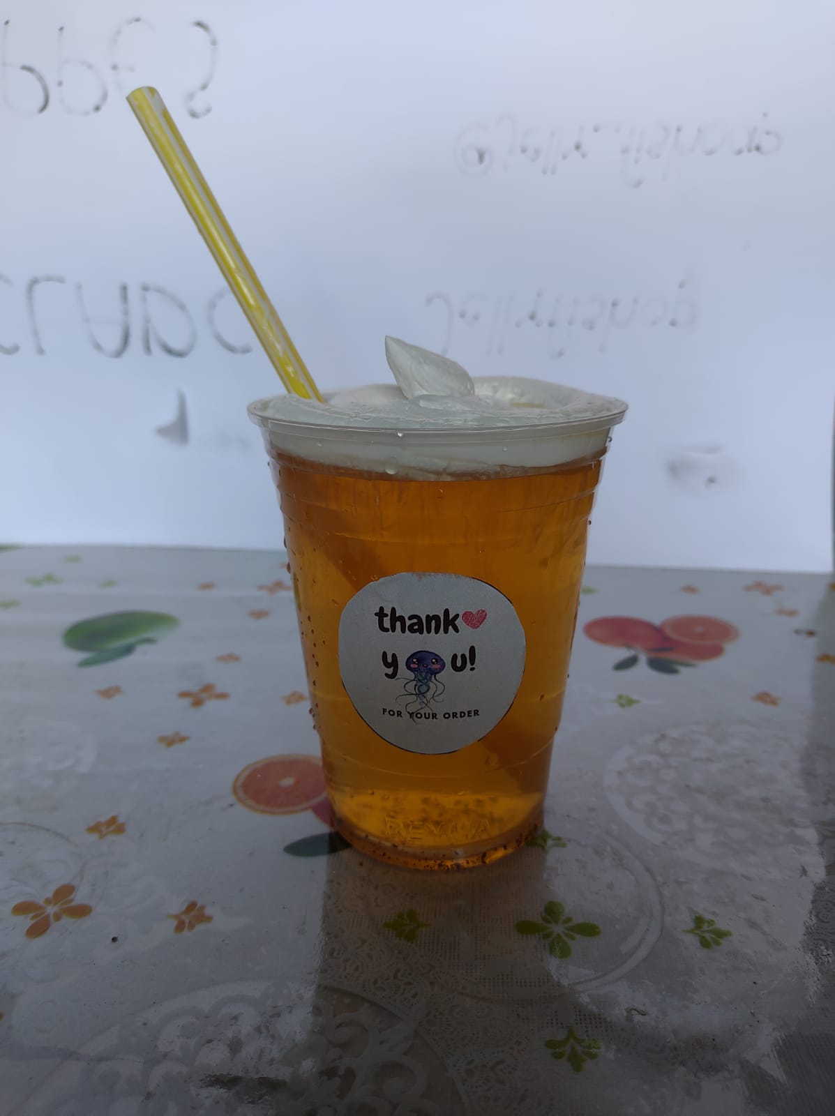 16 oz. Base té verde, negro o rojo, leche de soya, chantilly y aceite esencial de Joy