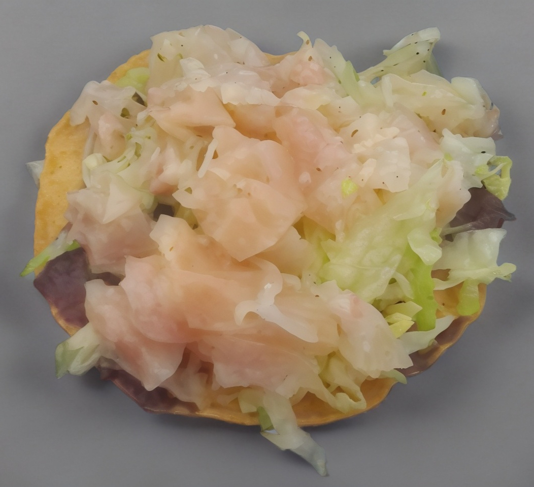 Chicharrón de 50 gramos aprox sancochado con pedacitos de carne de cerdo , condimentos con hierbas preparado con salsa chipotle, bañado con chile , queso asadero, lechuga, crema deslactosada