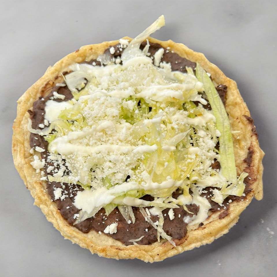 Base de frijoles negros, lechuga, queso y crema