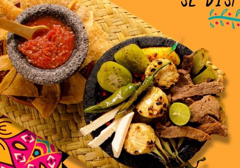 Riquísimo Molcajete para compartir con Fajitas de Arrachera, Pastor, Salchicha para asar, Queso panela, Piña asada, Nopal y cebolla asada