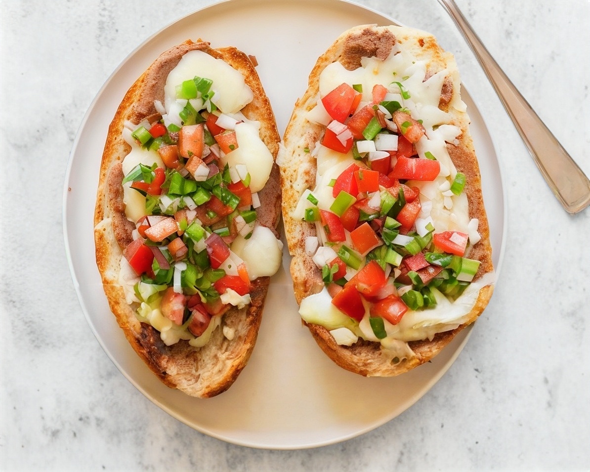 2 Piezas de Molletes con Frijoles Refritos y Queso asadero con Pico de Gallo