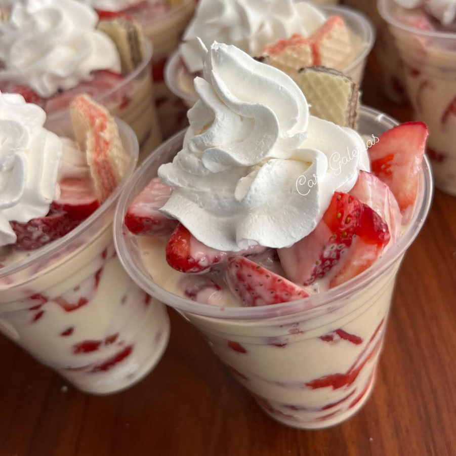 Vaso de medio de fresas frescas seleccionadas, bañadas en nuestra crema especial de la casa.
