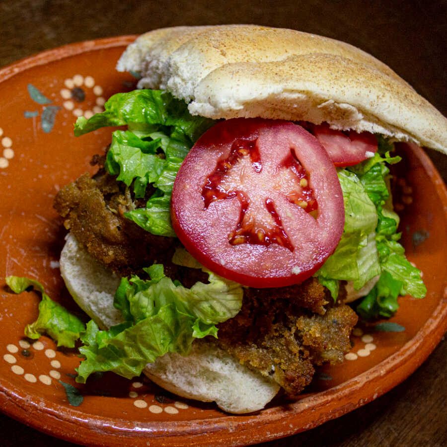 Acompañada con lechuga, queso y crema.