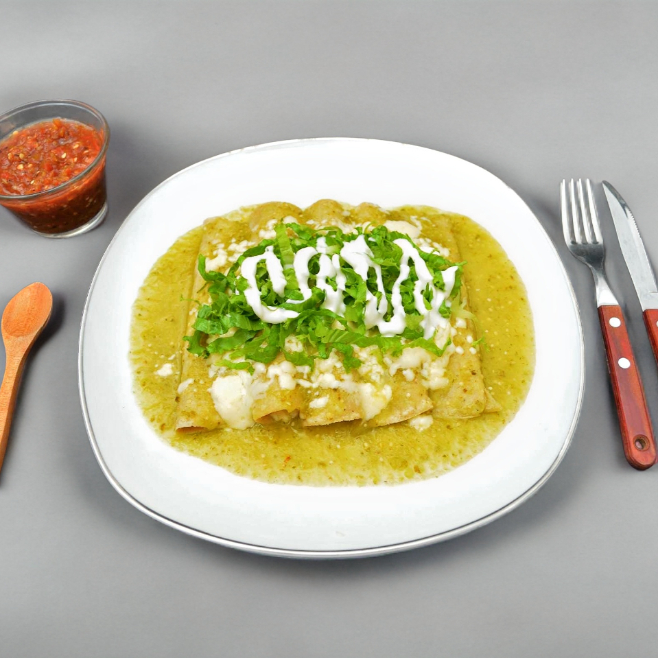 Enchiladas Suizas + Agua 1/2 L (Gratis)
