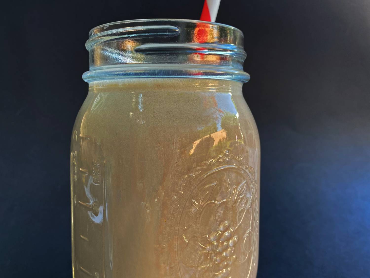 Vaso de licuado de frutas con leche o jugo de naranja.
