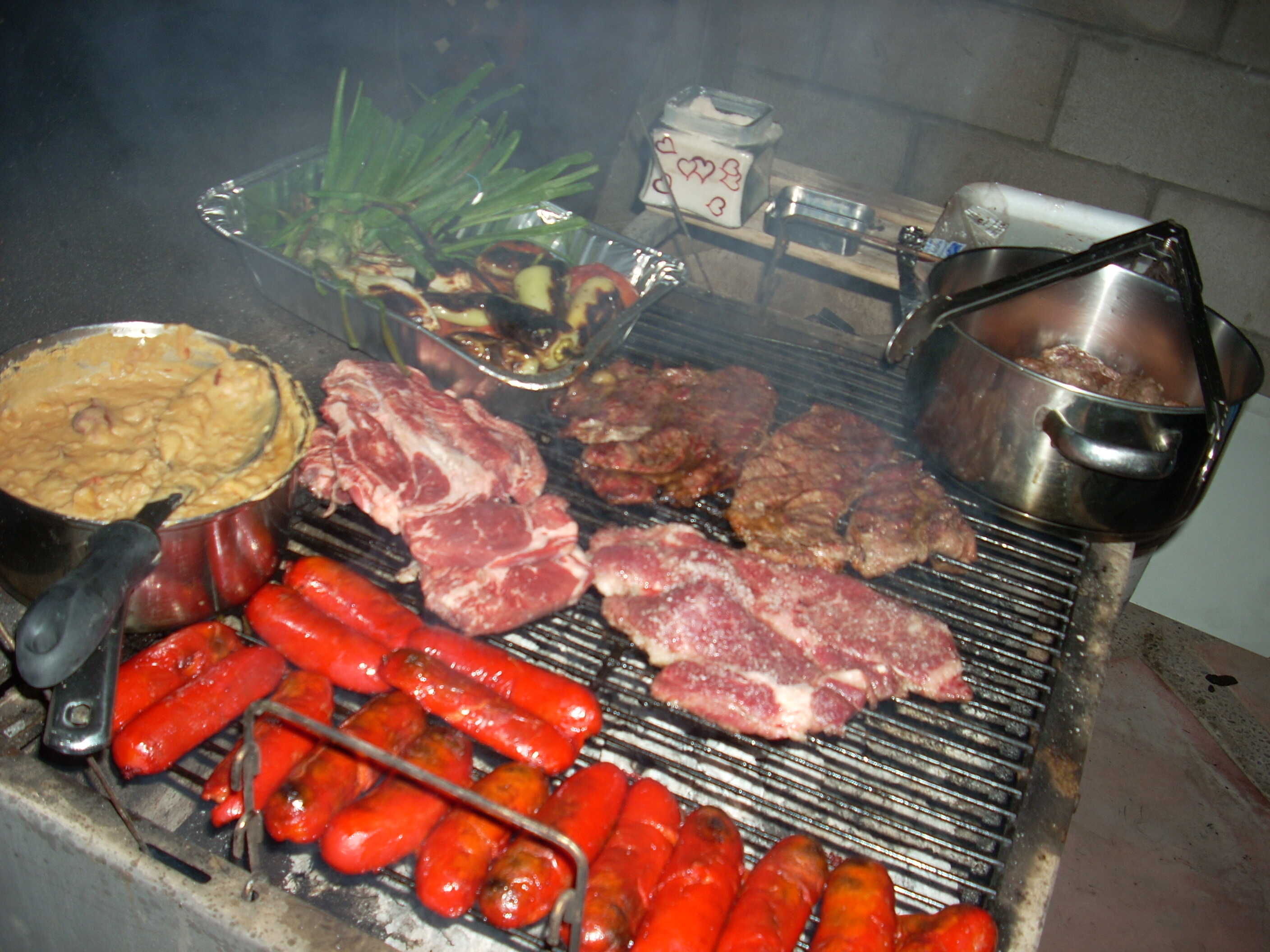 Para 7 personas. Incluye 500grs de arrachera, 500grs de bistec marinado, 300grs de tocineta, 250grs de chorizo rojo, 200grs de chistorra, medio kilo de tortillas de maíz, 5 quesadillas, 4 nopales, cebollas cambray, chiles y salsas.
