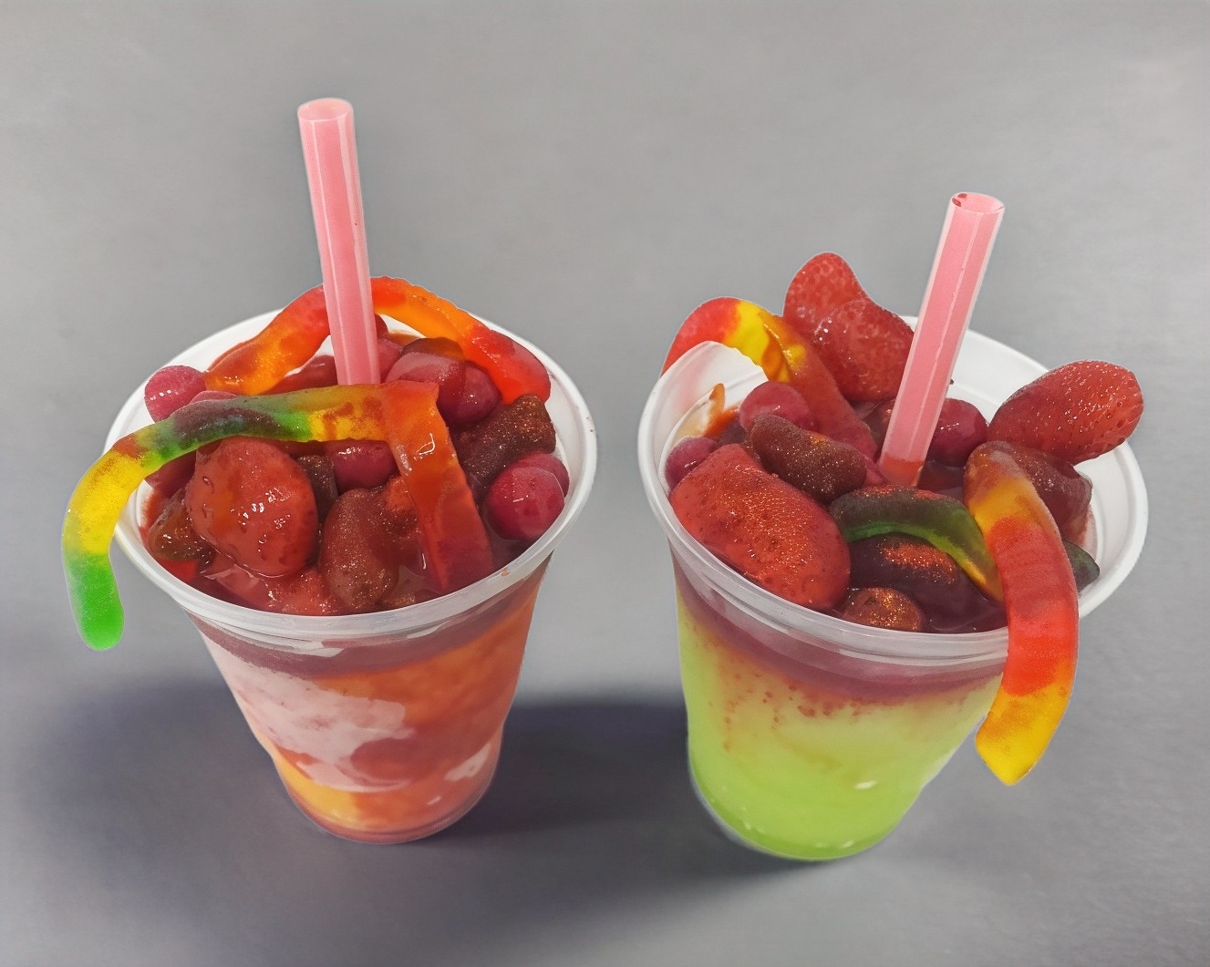 Deliciosa paleta de agua con rica variedad de gomitas y dulces aciditos con chamoy y miguelito.