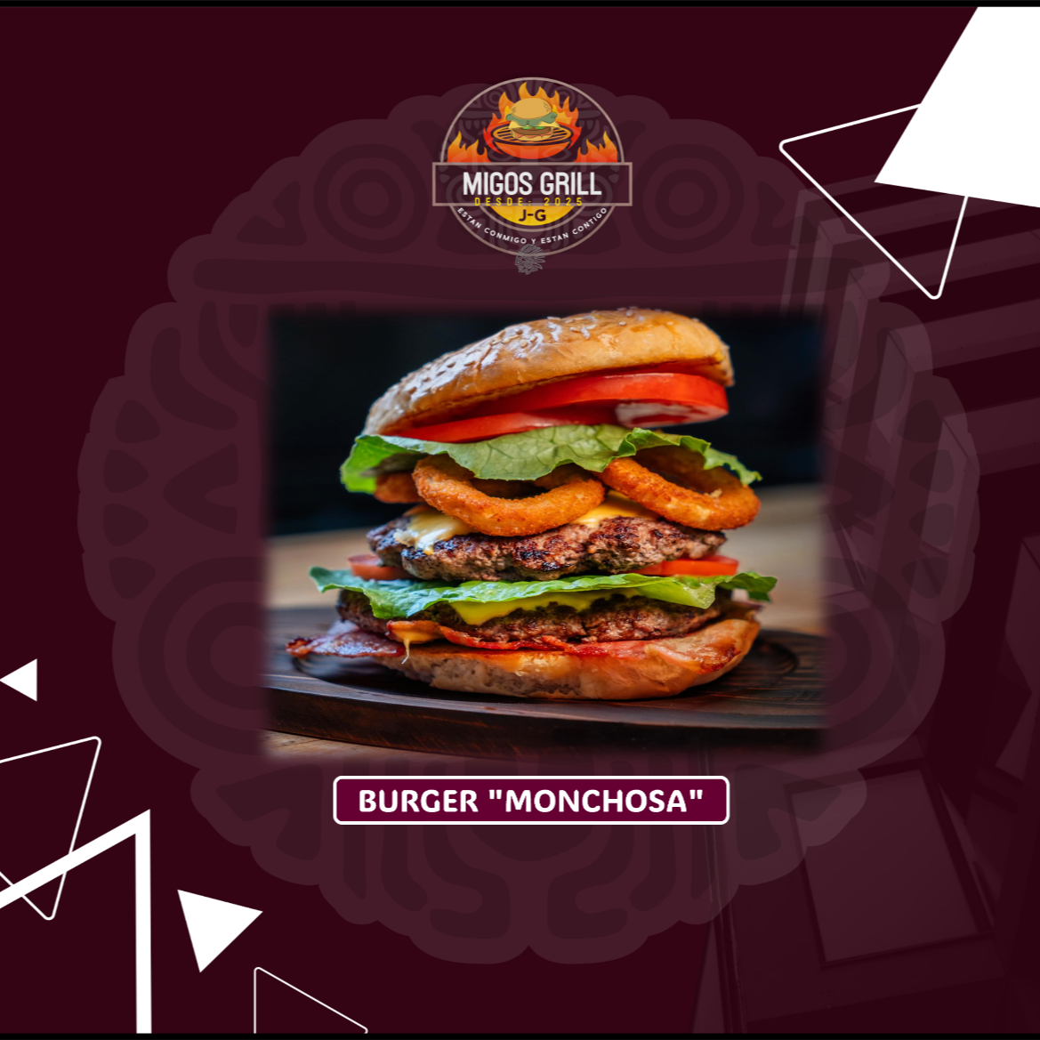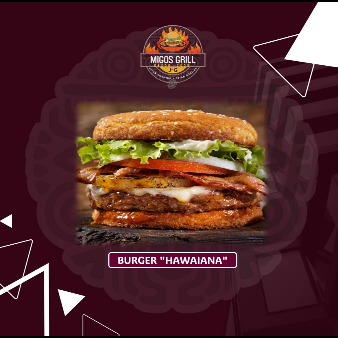 (Pan parrillero, Doble medallón sirlon, Tocino, salchicha de pavo jamón de pavo, salchicha para azar, queso asadero, doble queso americano chiles en escabeche, pepinillos, piña.)