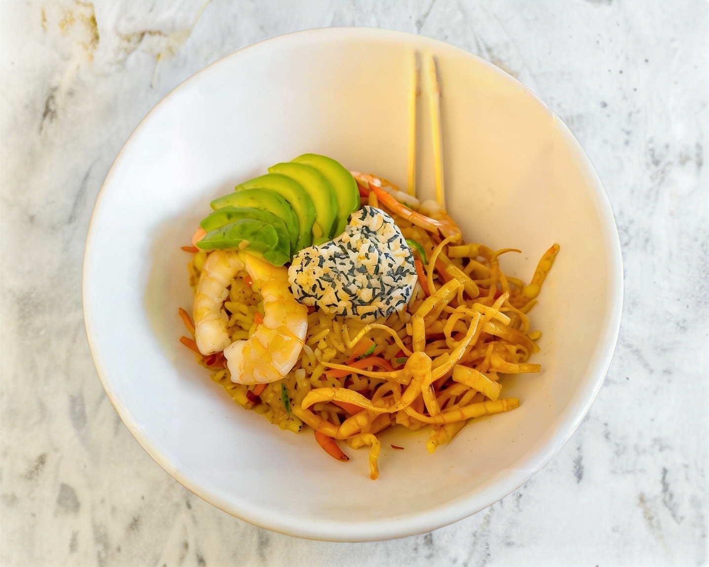 Arroz frito con verduras, camarón, pollo, arrachera, aguacate, queso crema y salsa Tampico. ¡#MiyamotoSushi! ¡Explosión de sabor!