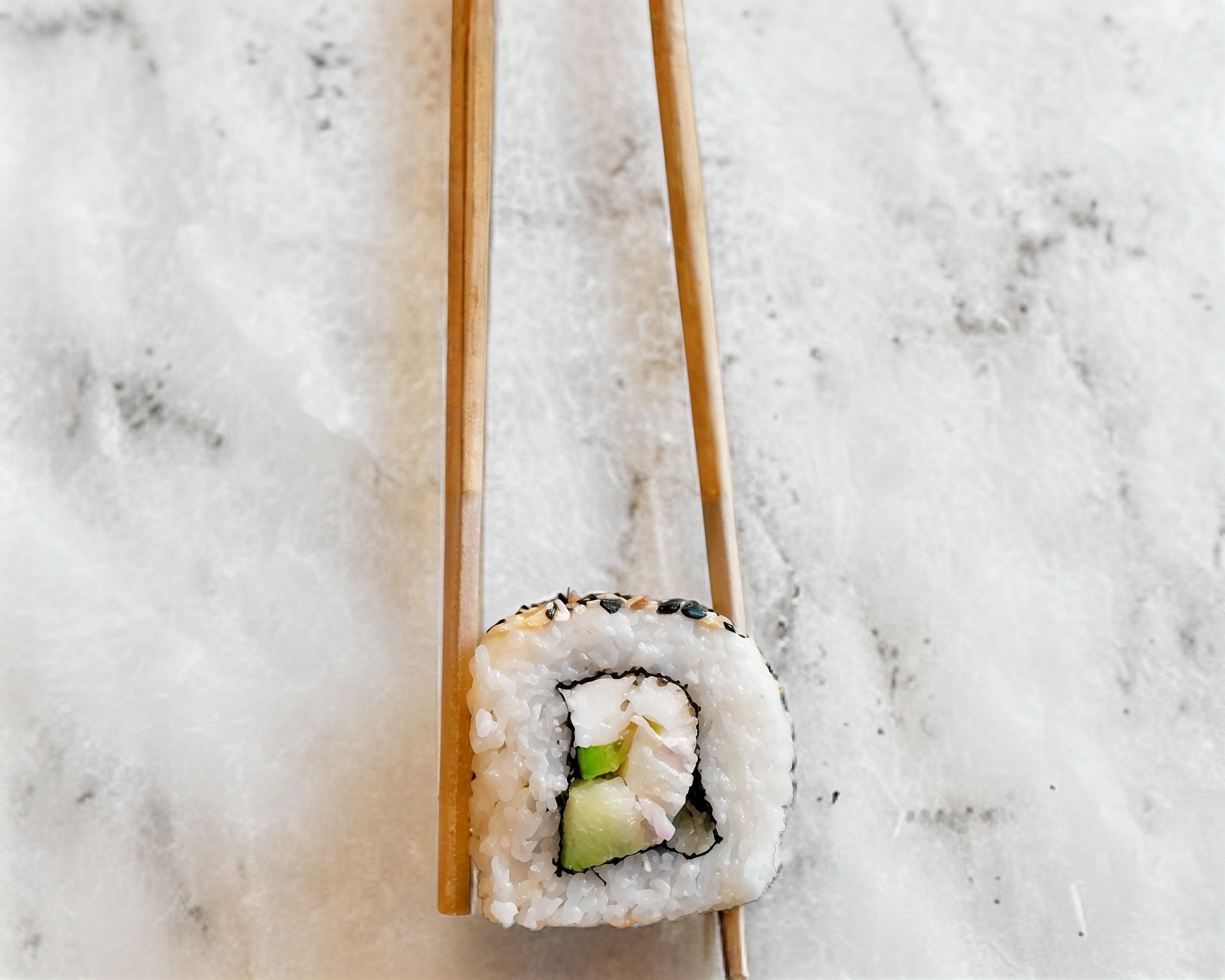 Queso crema, camarón, kushiage, pepino y aguacate. Empanizado. ¡No es cualquier sushi, es Miyamoto!
