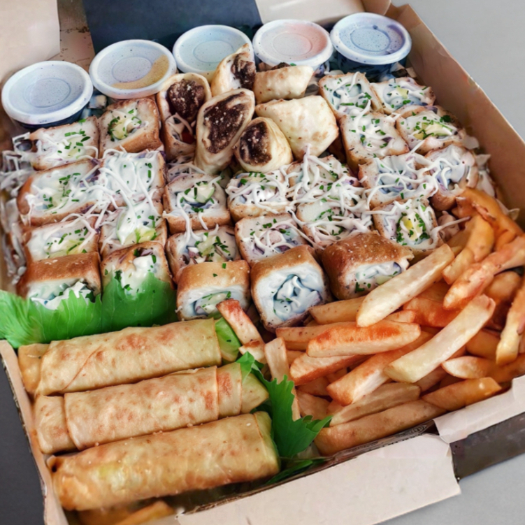 1 Rollo especialidad + 1 rollo normal + 1 complemento + papas. ¡Perfecto para 1-2 personas!