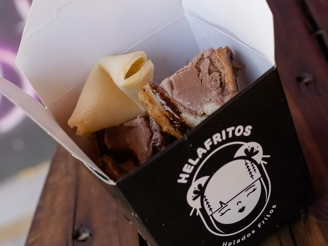 Deliciosa bola de helado cubierta de una pasta que después se fríe, con lo que se consigue un postre caliente y crujiente por fuera pero dulce y frío por dentro.