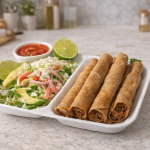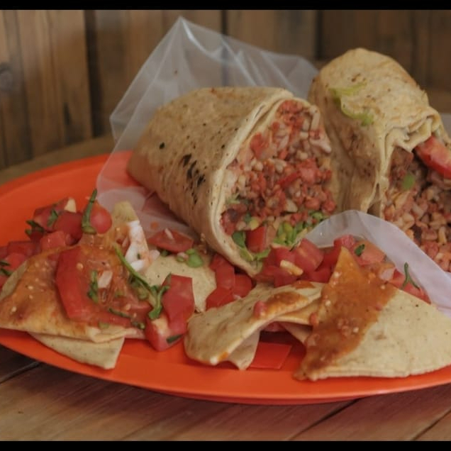 2 tortillas de harina lechuga, jitomate, cebolla, aguacate, picante y aderezos