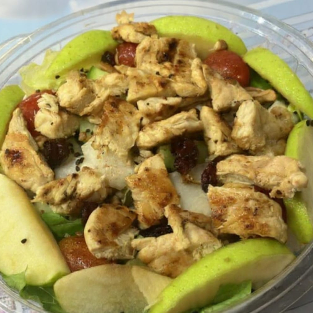 lechuga italiana, cherry, zanahorria, jicama, pepino, manzana, nuez, arandanos, semilla de girasol, ajonjoli, crutones, aderezo de la casa