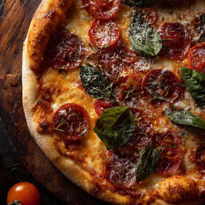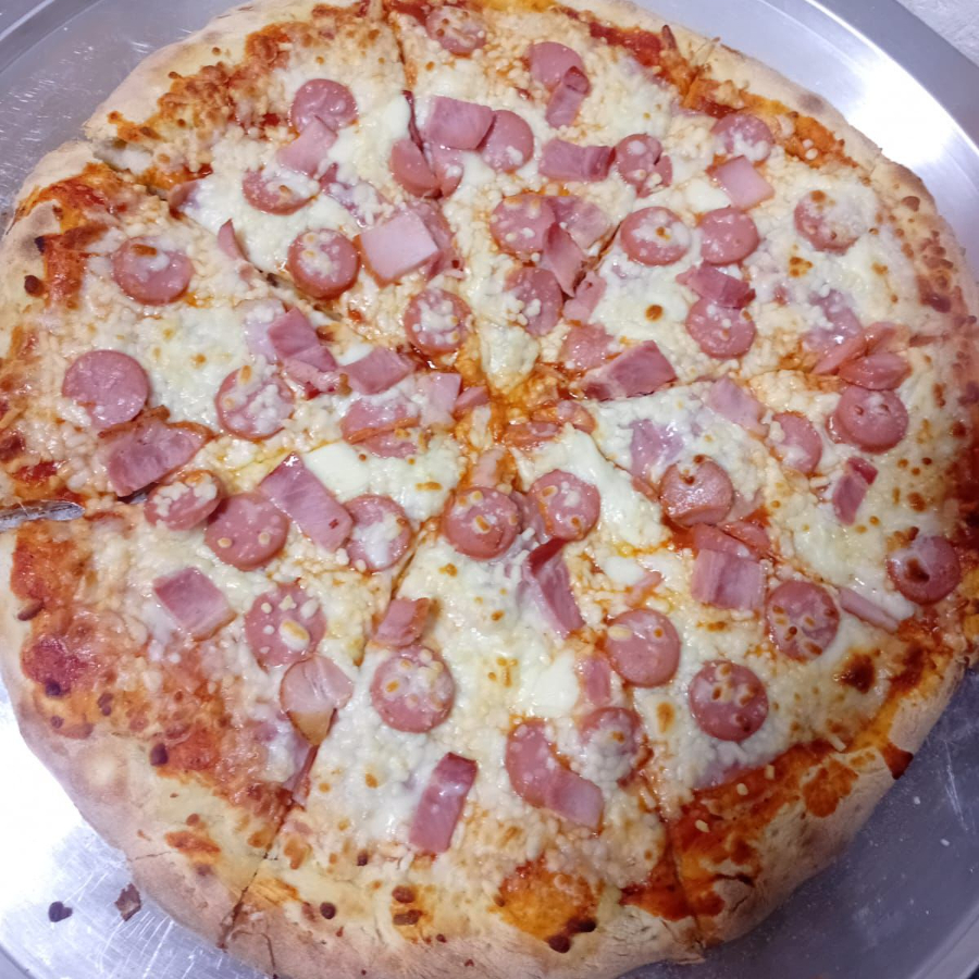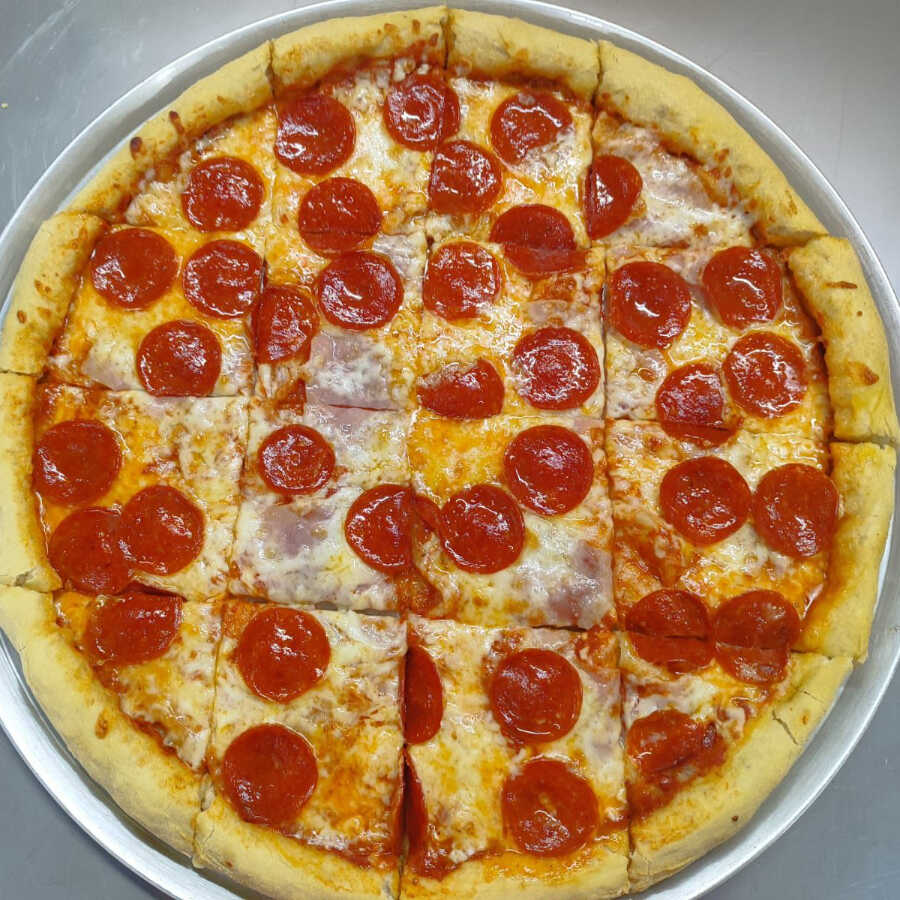 Popular pizza con queso mozarela, jamón y generosas rebanadas de pepperoni.