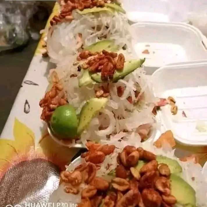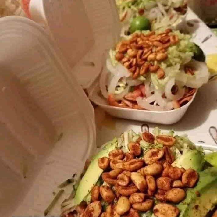 Pico de gallo con col zanahoria 🥕 rallada pepino cacahuate aguacate limón salsa orejitas de puerco