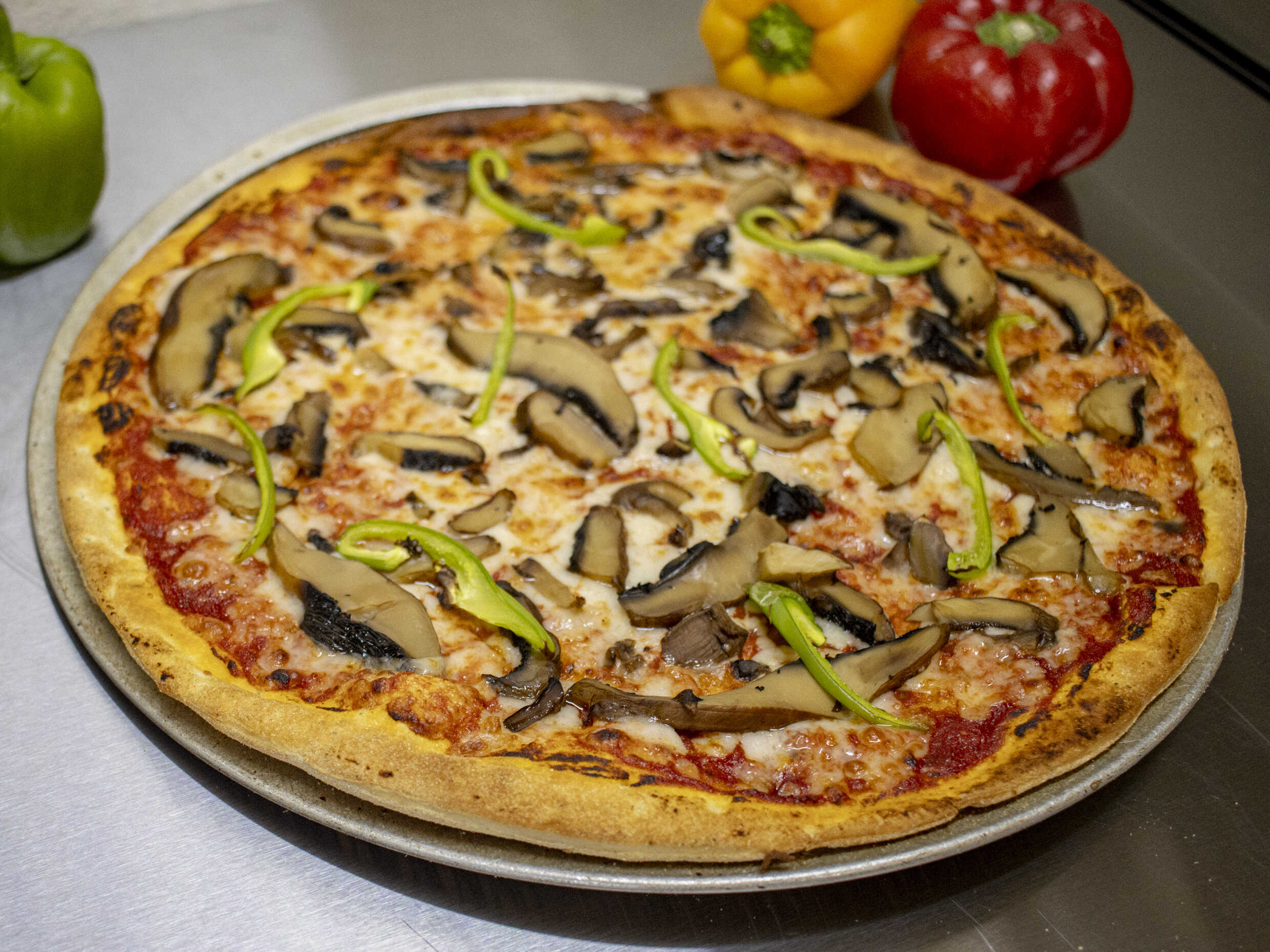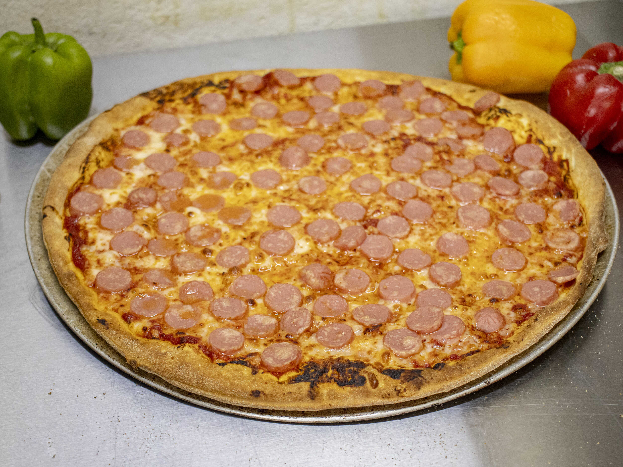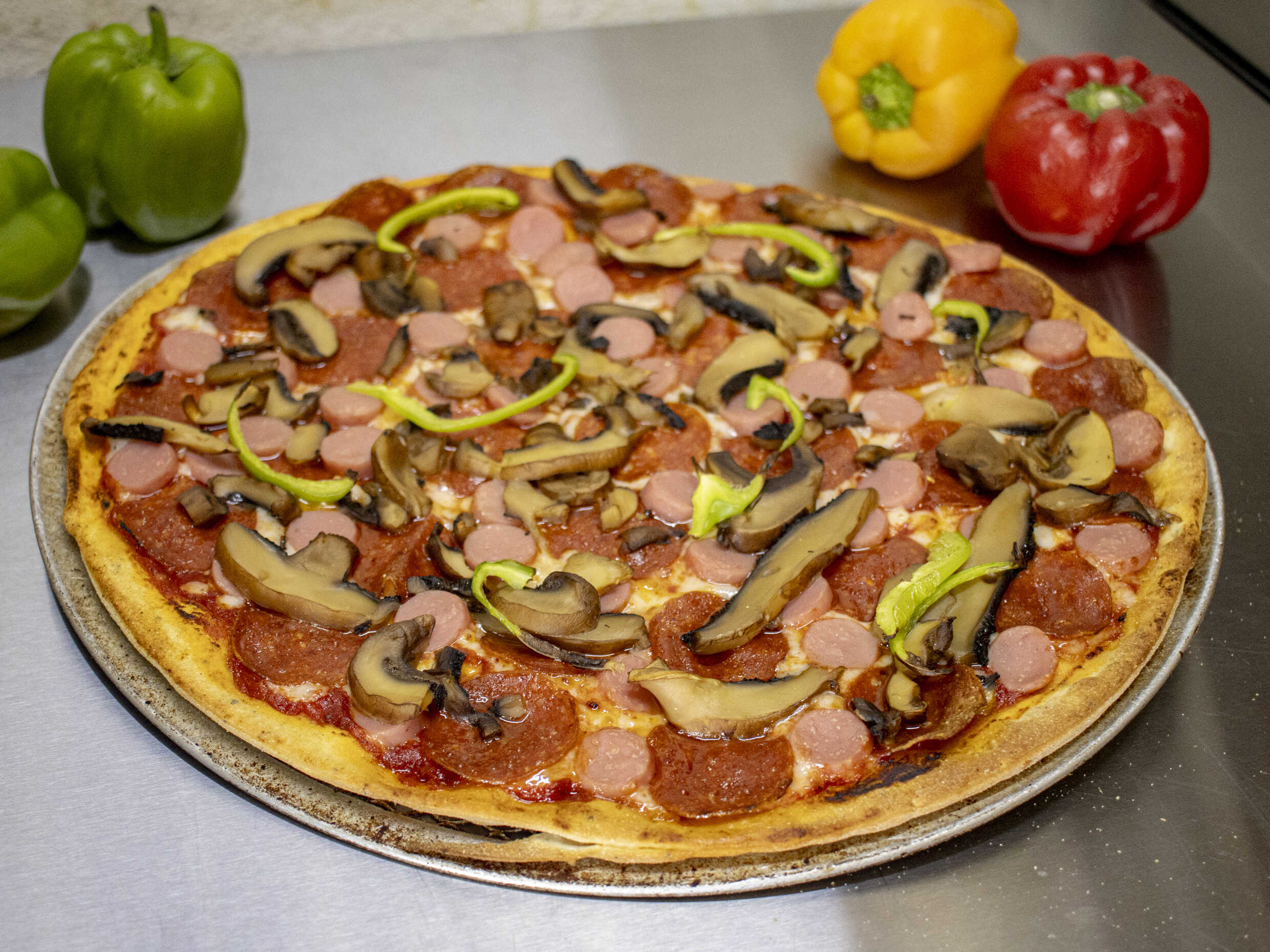 Preparada con queso mozzarella, pepperoni, salchicha, champiñones y morrón.