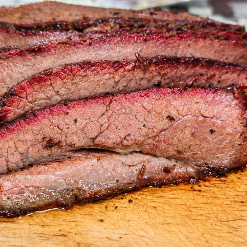 Brisket cocido a fuego lento, con costra especiada y centro jugoso. 💨 12 horas de humo en cada mordida.